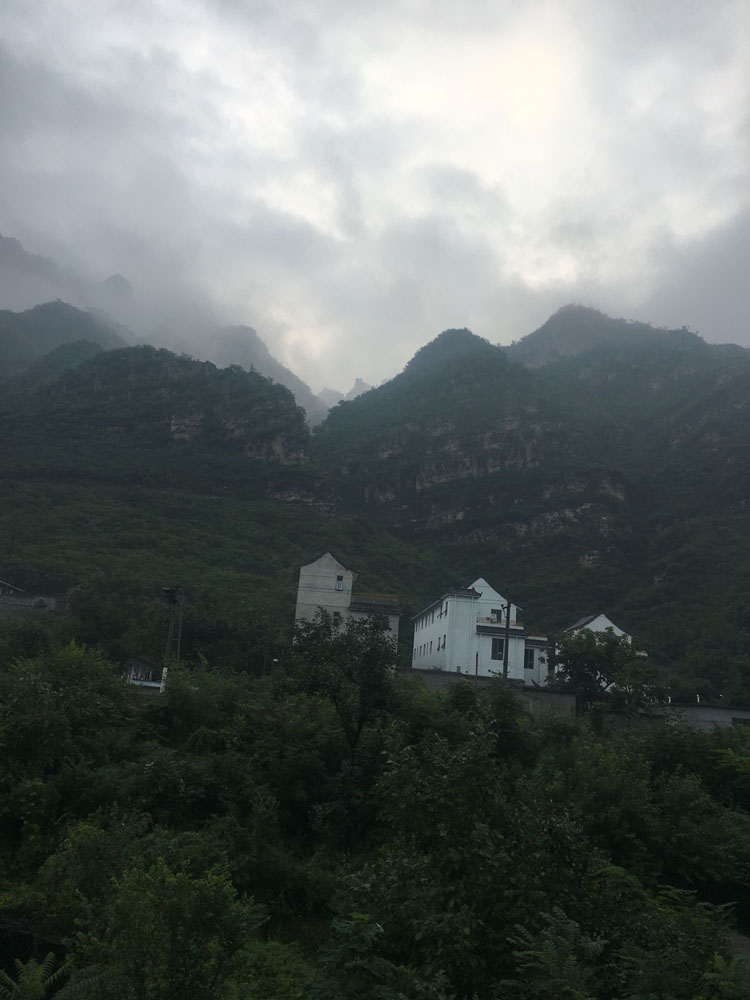 一早我就被各种的鸟鸣叫醒,拉开窗帘,百里峡笼罩在一片薄雾之中,真是云雾缭绕,推开窗,一股山间草树特有的泥土芬芳从窗外飘进屋里。